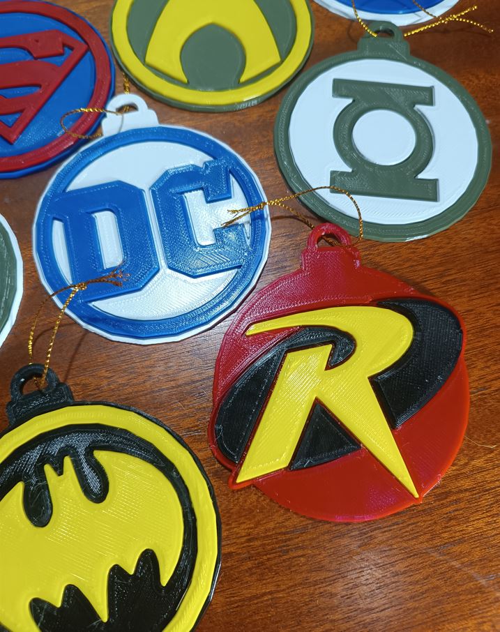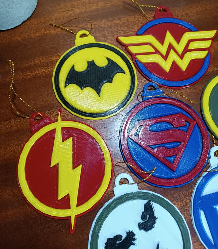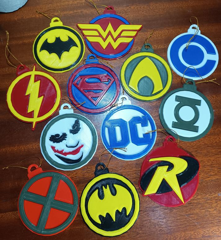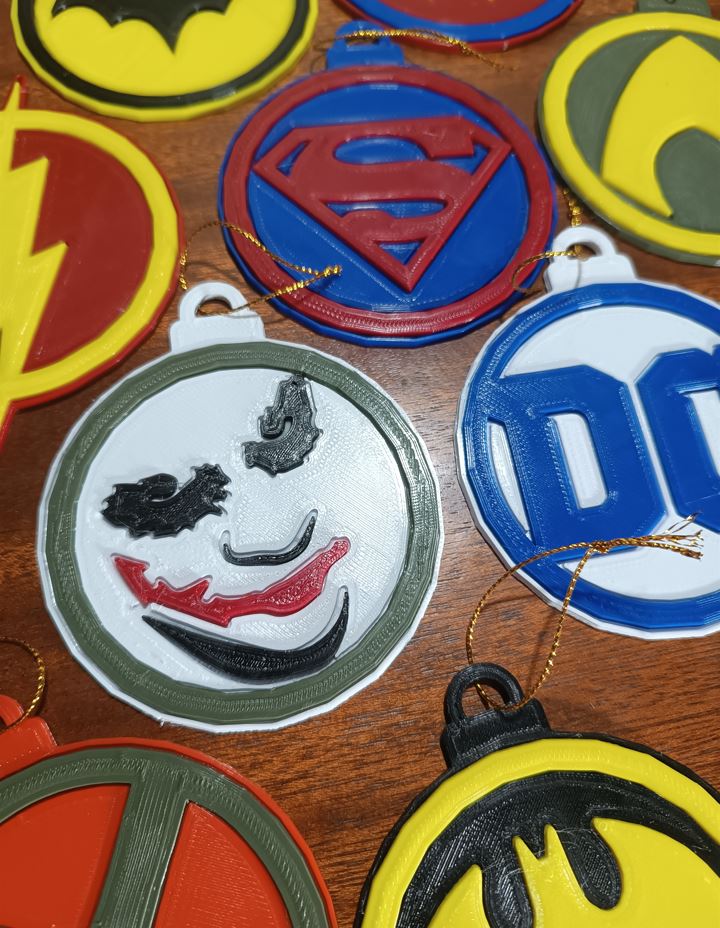 Adorno Navidad Superhéroes DC Comics – Modelos de Batman, Superman y más Adorno navideño de superhéroes. Ideal para colocar en tu árbol navideño. Tenemos 10 modelos... Los modelos disponibles del universo DC COMICS son: Batman, Wonder Woman, Superman, Flash, Linterna Verde, Martian Marcian, cyborg, Aquaman, Logo Dc Comics y Batgirl, El precio es el publicado por modelo. Cada modelo se puede fabricar en 2 colores: Base del adorno y el circulo + logo del personaje, a excepción del Wonder Woman y Robin que son 3 colores (Base y 2 logos) y el Joker que son 4 (Base + 3 logo)