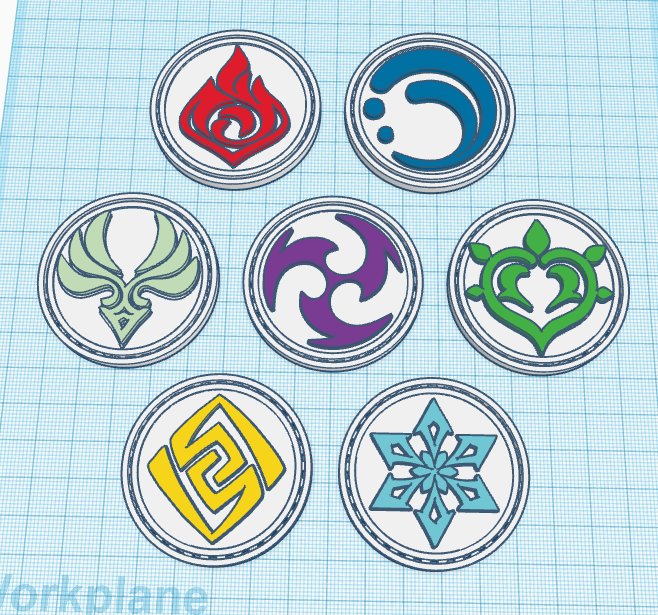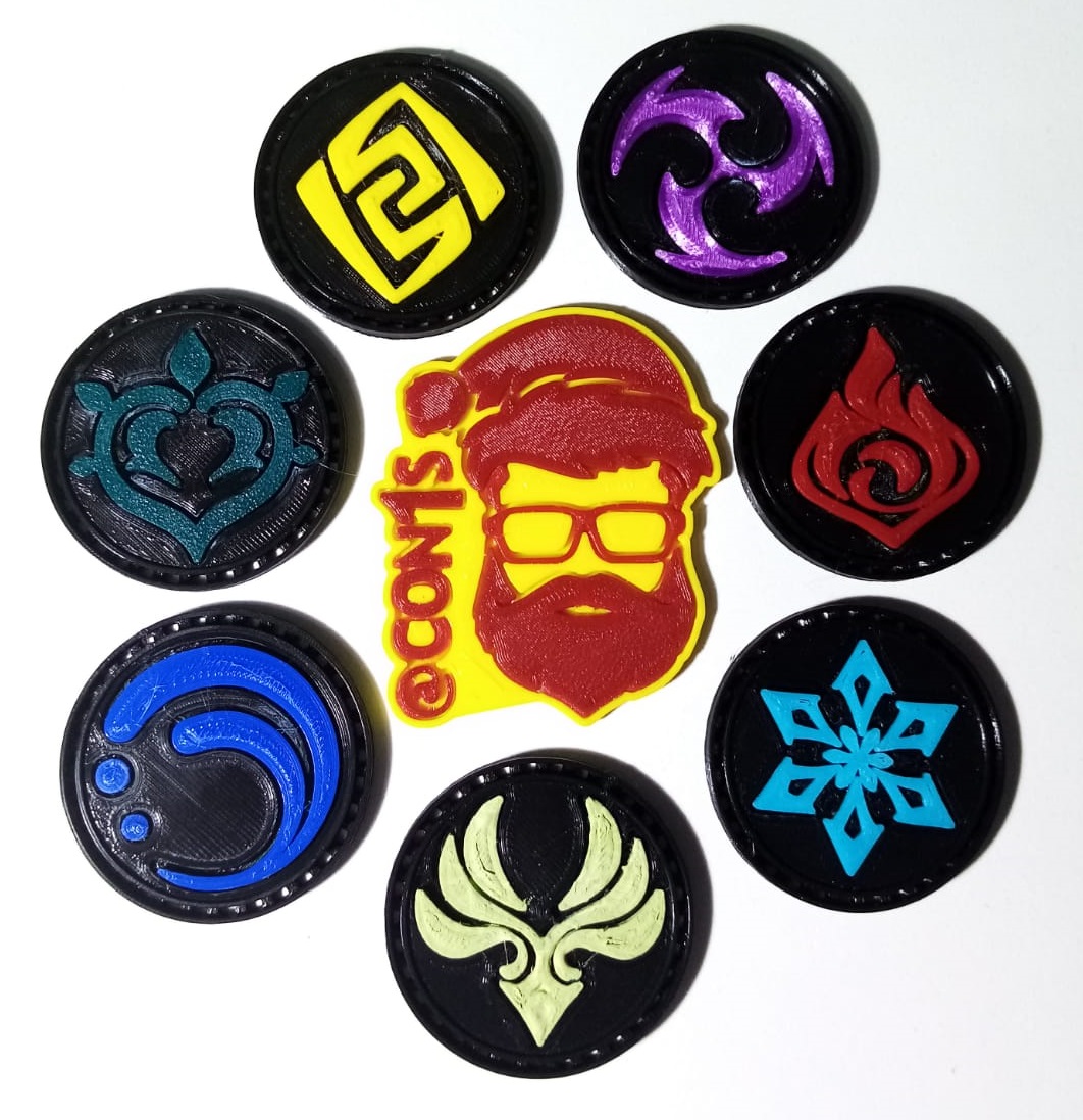Set 7 Insignias Genshin Impact – Incluye los 7 elementos del juego Set de las 7 insignias de Genshin Impact.